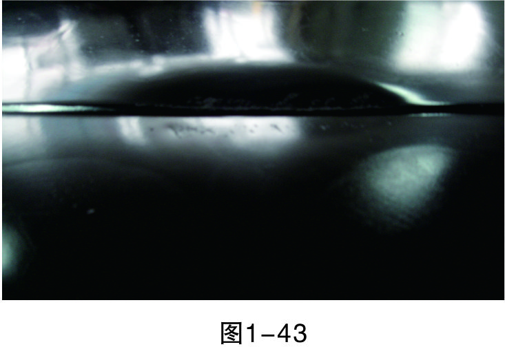 步驟16(檢查修復(fù)效果):用直尺測(cè)量修復(fù)平面與完好平面是否在同一平面上。如圖1-57所示,修復(fù)平面與完好平面還有一定的誤差。