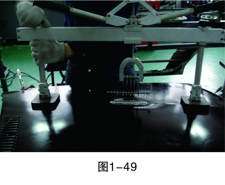 步驟6(穿進(jìn)L形鐵):在介子中穿入L形鐵,以便整形架的拉鉤能固定在上面進(jìn)行拉伸作業(yè),如圖1-47所示。