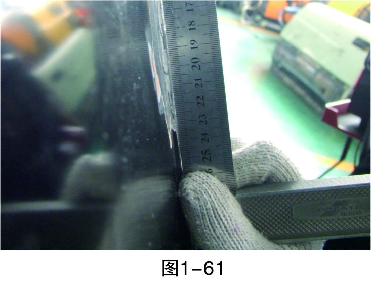 步驟20(測(cè)量):對(duì)修復(fù)平面進(jìn)行測(cè)量,檢查是否在同一水平線上,如果是就可結(jié)束鈑金修復(fù)作業(yè),否則重復(fù)前面步驟直至修復(fù)完成,如圖1-61所示。