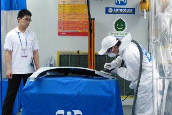 國賽展位龍神現(xiàn)場演示保險杠修復