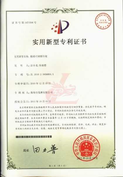 精確可調(diào)整形架專利證書 |