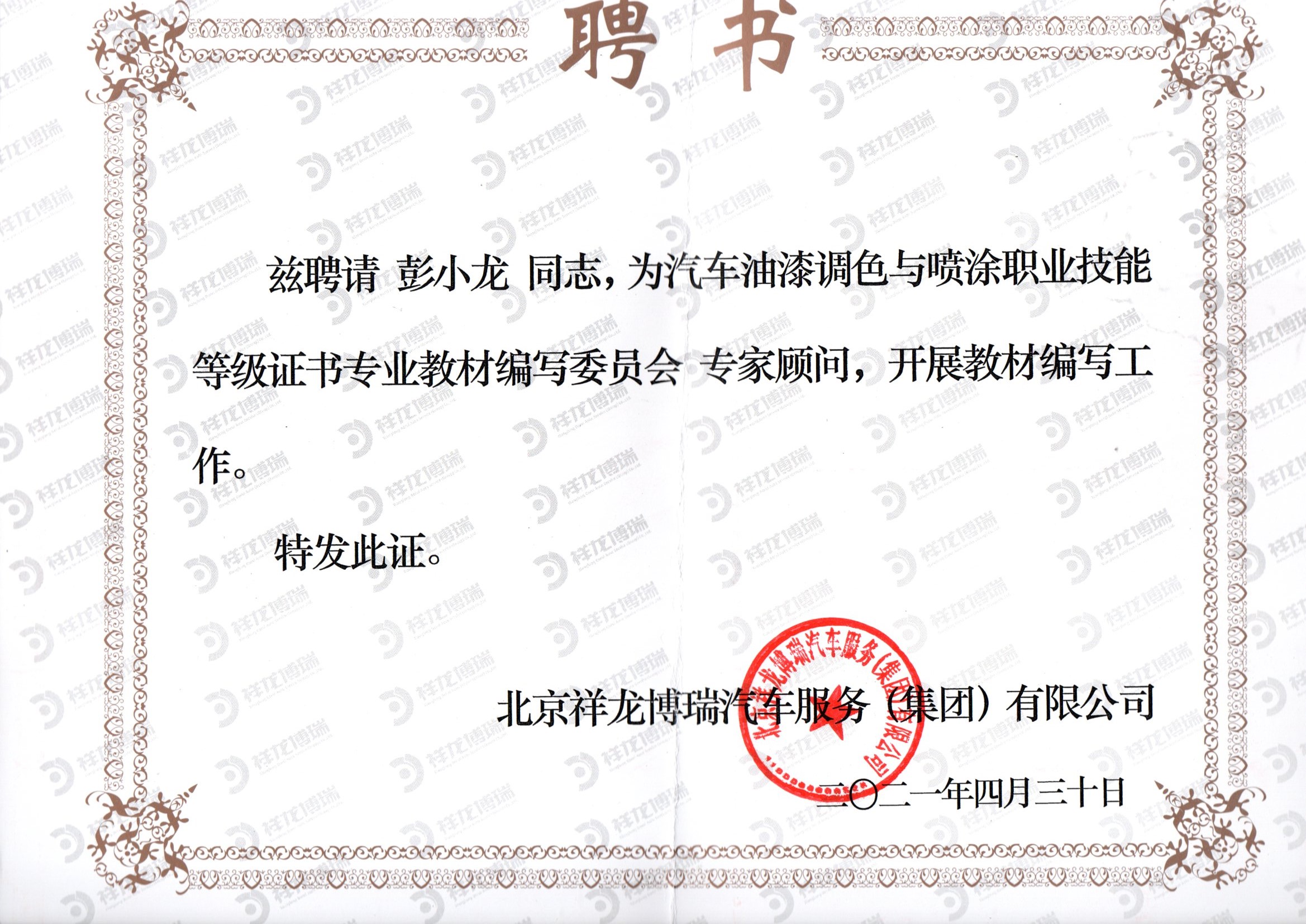 彭小龍總經(jīng)理證書 | |